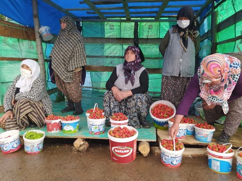 Özellikle organik ve pembe renkli olması ile ünlenen Demirciören çileğinin bu yıl ki kilogram fiyatı 10 TL ve pazarlarda neredeyse yok satıyor.