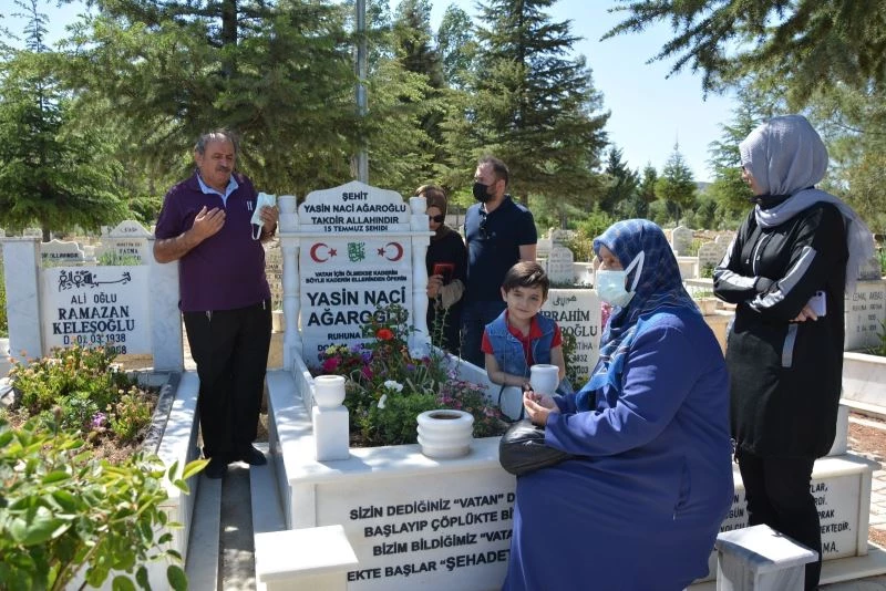 Ramazan Bayramı öncesi şehidin Korkuteli’ne bağlı Yazır Mahallesi’nde bulunan mezarını ziyaret eden anne Zehra ve baba Osman Ağaroğlu, Yasin Naci için dua etti.