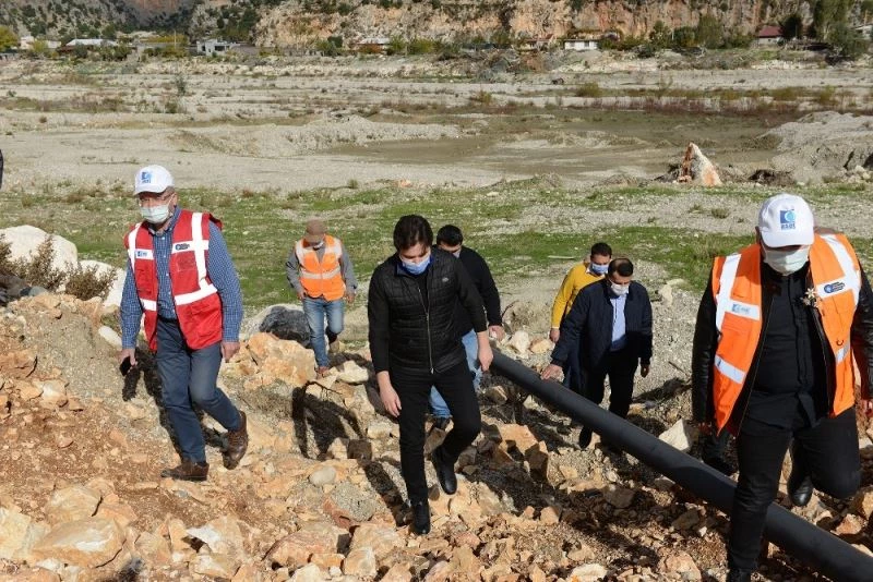 Yaklaşık 14 Milyon TL’ye mal olan proje kapsamında 35 km boru hattı döşendi ve 3 farklı noktada terfi istasyonu yapıldı. Zorlu arazi koşullarında, 80 dereceyi geçen eğimli yamaç boyunca döşenen hattan iletilen su, terfiler aracılığıyla 20 metre kotundan 680 metreye çıkarılıyor. Tepe noktasındaki havuzda toplanan su buradan cazibe ile akıtılarak araziyi sulayacak.
