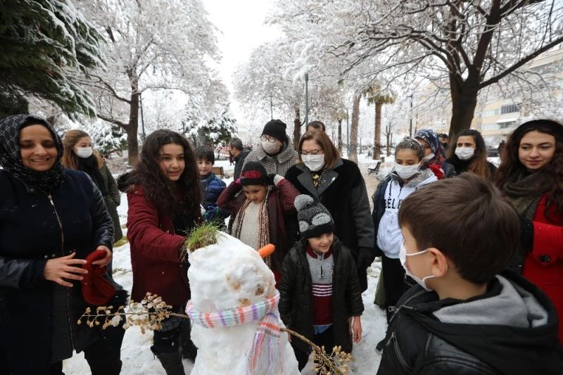 Gaziantep’te kar küreme ve temizleme çalışmalarını denetleyen Büyükşehir Belediye Başkanı Fatma Şahin, parkta gördüğü çocuklar, aileleri ve polislerle birlikte kar topu oynadı.