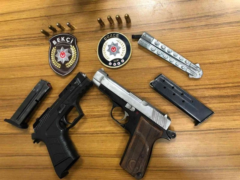 DÜZCE – Düzce’de Polis ekipleri tarafından aranan şahıslara yönelik yapılan denetimde 42 şüpheli şahıs yakalandı. Yapılan aramalarda 3’ü kuru sıkı olmak üzere 12 tabanca 1 tüfek yakalandı.