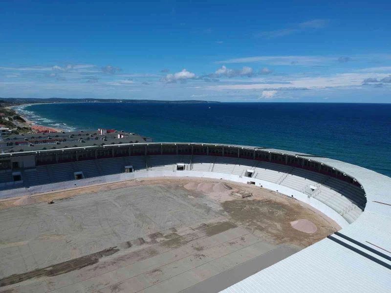 Deniz manzaralı modern şehir stadında son hazırlıklar