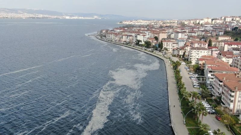 İzmit Körfezi, deniz salyası kaynaklı oluşan tabaka sebebiyle beyaza büründü.