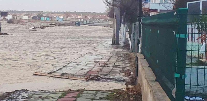 Edirne’nin Enez ilçesinde şiddetli lodos sebebiyle denizin taşması sonucu sahil yolları kapanırken, suyun sitelere girmesine ramak kaldı.