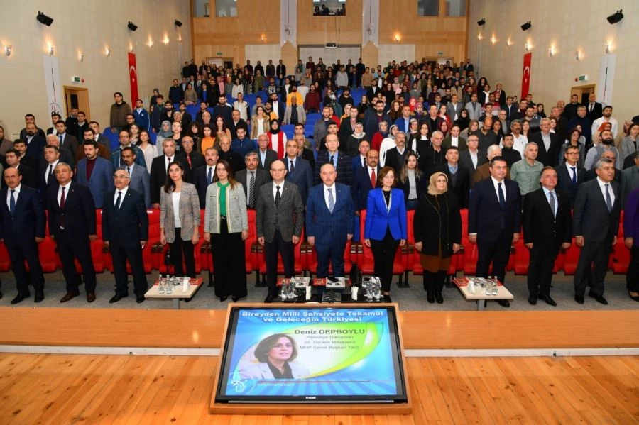 Saygı duruşunda bulunması ve İstiklal Marşının okunmasının ardından açılış konuşmasını OKÜ Rektörü Prof. Dr. Murat Türk yaptı.Devamında konuşan 26. Dönem Milletvekili ve MHP Genel Başkan Yardımcısı Deniz Depboylu, "Milli ve manevi değerlerimizi özümseyerek nitelikli bir insan haline gelebilmek için dikkat etmemiz gerekiyor. Kendi kültürümüze sahip çıkmalıyız. Tüm toplumlar değerleri ile vardırlar. Kültürleri ile varlık gösterirler, hayata tutunurlar. Kültürleri ise var olduğu sürece kendi varlıklarını korumayı başarırlar. Bu sebepledir ki genelde küreselleşme ile kültüre saldırı gerçekleşir. Milli ve manevi değerlerimizi biz tarihimizden alırız. Bu yüzden de tarih önemlidir. Tarihimizi bilmediğimiz zaman bugünümüzü anlayamayız. Bugünü anlayamıyorsak geleceği inşa edemeyiz. Kendi milli ve manevi değerlerimizi koruyacak yeni savunma mekanizmaları oluşturmalıyız." dedi. Depboylu, geleceğin Türkiye'sini oluşturabilmek için bireyden milli şahsiyete doğru tekamül edilmesi gerektiğini belirterek, "İşte tam da bu noktada bizleri umutlandıran gençlerimizdir. Taze beyinler, öğreniyorsunuz, yeni bilgilerle donanıyorsunuz. Bunları kullanarak daha güzel işlere imza atacaksınız." diye konuştu.