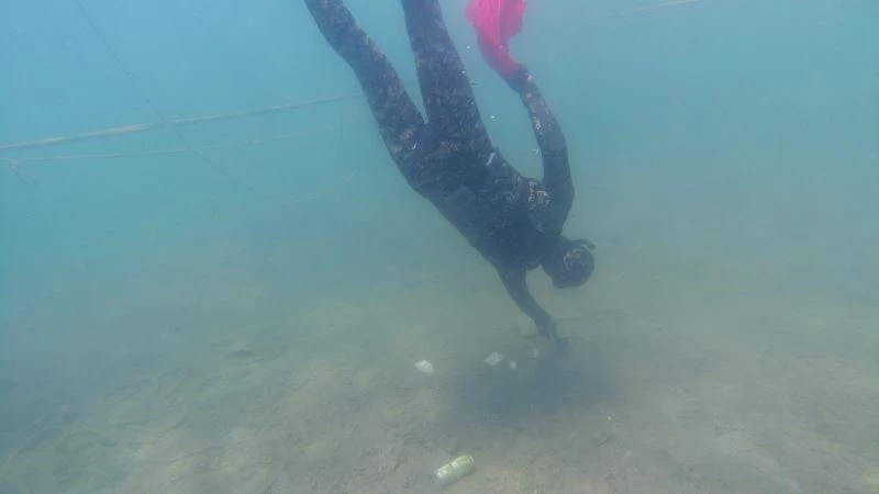 Bodrum Belediyesi tarafından sürdürülen deniz dibi temizliği devam ediyor. Ekipler 2 saatlik çalışma ile deniz dibi temizliğinde denizden 1 ton atık çıkardı.