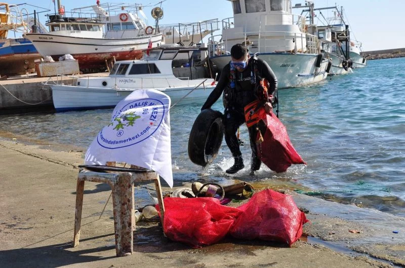 Mersin Dalış Kulübü Merkezi’nin dalgıçları deniz altında temizlik yaparken, çevre temizliğini ise ’Ruhun Yelkenleri’ projesi ekibi gerçekleştirdi.