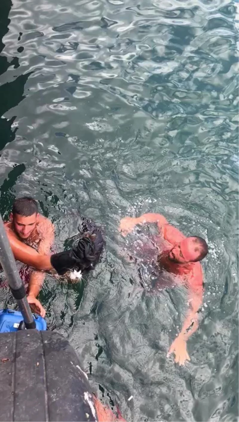 Bursa’nın Gemlik sahilinde denize düşerek yorgun ve bitkin şekilde mahsur kalan kediyi, cankurtaran ekibi çıkardı. Kurtarma anları amatör kamera ile kaydedildi.