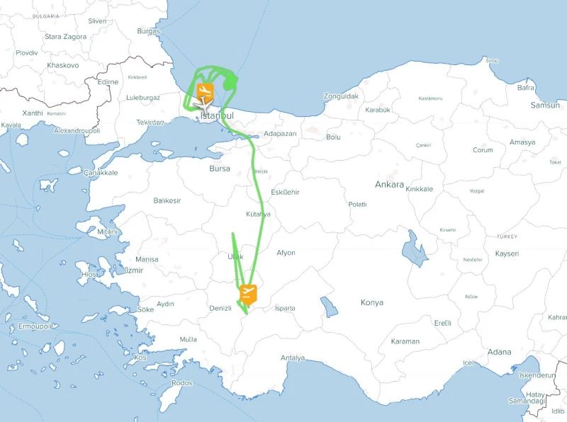 Denizli uçağı 2 saat 26 dakika boyunca havada tur attı