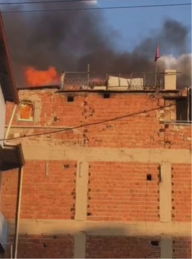 Denizli’de bir binanın çatı katı alevlere teslim oldu.