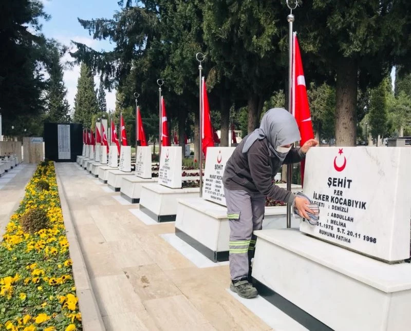 Mezarlıklarda temizlik ve bakım çalışmalarını sürdüren Denizli Büyükşehir Belediyesi ekipleri Asri Mezarlık’ta bulunan asker ve polis şehitlikleri ile kent merkezi dışındaki ilçelerde bulunan şehitlikleri de unutmuyor. Denizli Büyükşehir Belediyesi ekipleri vatanı için gözünü kırpmadan canını veren şehitlerin ebedi istirahatgahlarında da bakım, temizlik ve çiçeklendirme çalışması yapıyor.