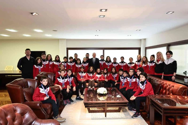 Samsun ve Mersin’de düzenlenen 11 ve 12 yaş yüzme Türkiye şampiyonalarında 15’i altın olmak üzere toplam 69 madalya kazanan Denizli Büyükşehir Belediyespor Yüzme Takımı, Başkan Osman Zolan’la buluştu.