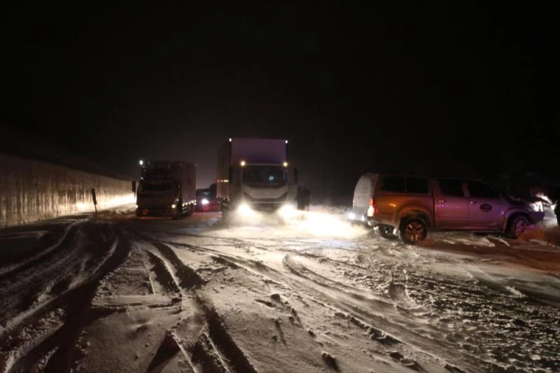 Polis ekipleri, oluşturdukları noktalarda, kar lastiği ve zinciri olmayan araçlar ile ağır tonajlı araçları bekletiyor.