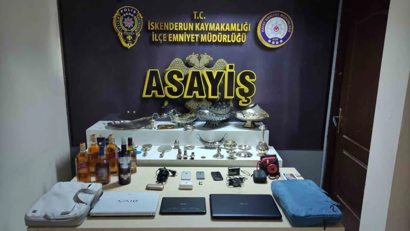Alınan bilgiye göre, İl Emniyet Müdürlüğü İskenderun İlçe ve Asayiş Şube ekipleri tarafından peş peşe 3 evde meydana gelen hırsızlık olayları ile ilgili çalışma yapıldı. Ekiplerin çalışmasında evlere giren çok sayıda gümüş ev eşyası, bilgisayar ve altın çalan şüphelinin B.A. olduğu belirlendi. Polis tarafından düzenlenen operasyonda, şehir dışına kaçmak isterken yakalanan şahıstan, çaldığı eşyalar da ele geçirildi.