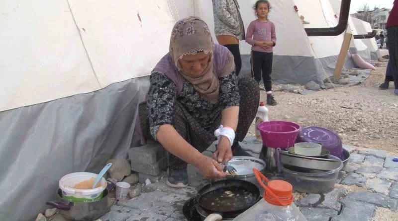 Depremde evi hasar gördüğü için ailesiyle birlikte çadırda yaşamak zorunda kalan ve bulaşıklarını çadırın önünde yıkayan 60 yaşındaki Saadet Yalçın, "Çok şükür çocuklarımız sağ. Kalanın canı sağ olsun. Giden eşya olsun, geri kazanılır. Geri gelir inşallah. Allah sağlık sıhhat versin, yavrularımızı esirgesin, bütün ümmetin de benimkini de” dedi.