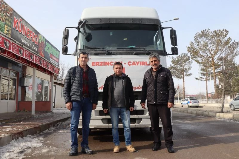 Çayırlı Kaymakamlığı ve İlçe Tarım Müdürlüğü koordinesinde yürütülen yardımda depremin etkisini şiddetli bir şekilde hisseden Malatya’da ki depremzede çiftçileri için, ilçe vatandaşlarından Gürsel Arslan 1 tır ve 5 bin 550 kilogram yonca balyası desteğinde bulundu. Çayırlı esnaflarından Ömer Turhan, Çayırlı ilçesi Balıklı köyü Muhtarı Gürol Çevik ve ilçe Nüfus Müdürü Emrah Ovalı eşliğinde Malatya’da ki depremzede çiftçilere ulaştırılmak üzere tır yola çıktı.