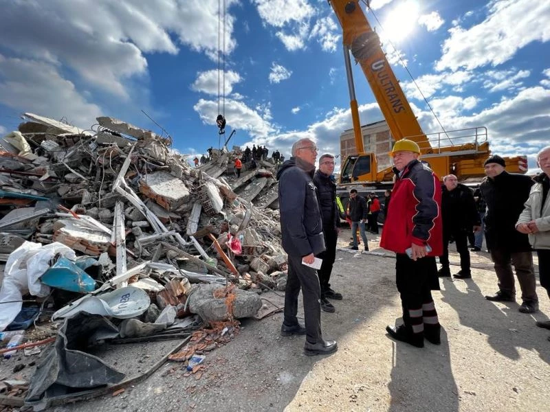 Yaşanan depremin hemen ardından Çukurova ilçesinde çöken apartmanların enkazına gidip yetkililerden ve vatandaşlardan bilgiler alan Başkan Akay, bu bilgiler istikametinde belediye birimlerine talimatlar vererek, belediyenin tüm imkanlarını seferber etti.