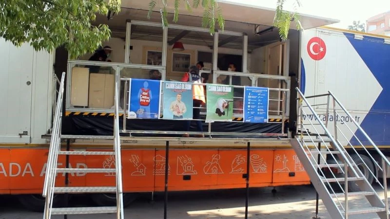 Afet ve Acil Durum Yönetimi Başkanlığınca 2021 yılının ‘Türkiye afet eğitim yılı’ olarak belirlenmesinin ardından afetler konusunda toplumda farkındalık oluşturmak için deprem simülasyon tırı Hatay’a geldi.