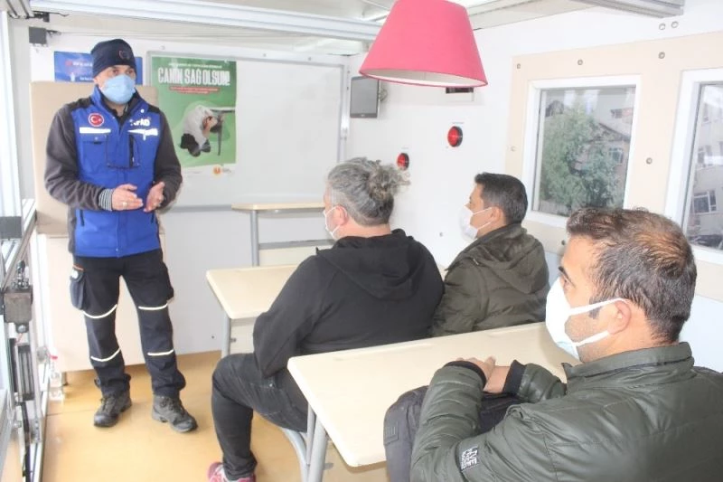Adıyaman’da görev yapan gazetecilere, AFAD’ın mobil deprem simülasyon Tırında eğitim verildi.