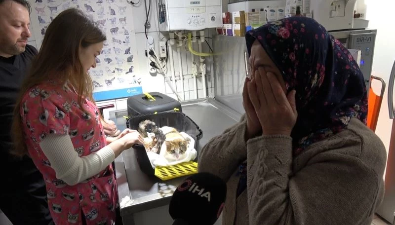 Depremden kurtulan kedi, sezaryenle yavrularını dünyaya getirdi