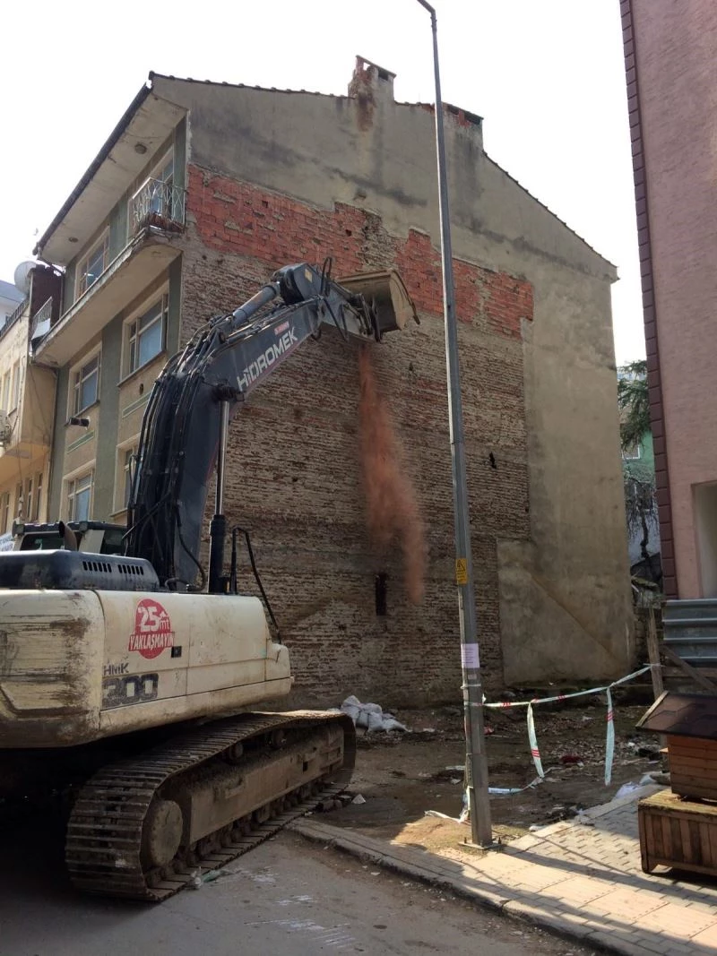 Kırcaali Mahallesi 9. Özen Sokak üzerinde yer alan 4 katlı binada çatlaklar meydana geldiği şikâyeti üzerine, Çevre ve Şehircilik İl Müdürlüğü ekipleri inceleme yaptı. Binanın can ve mal güvenliği açısından tehlike arz ettiği tespit edildi. Konuyla ilgili rapor, Osmangazi Belediyesi’ne gönderilerek binanın tahliye edilmesi istendi. Bunun üzerine harekete geçen Osmangazi Belediyesi Yapı Kontrol Müdürlüğü ekipleri, binada oturanlara tebligat gönderdi. Binanın tahliye edilmesinin ardından, belediye ekipleri yıkım öncesinde binanın çevresi güvenlik bariyerleri ve şeritler çevirdi. Güvenlik önlemleri altında riskli bina iş makinesi ile yıkıldı. Belediye ekipleri, yıkım sonrası bina enkazını kamyonlara yükleyerek kaldırdı.