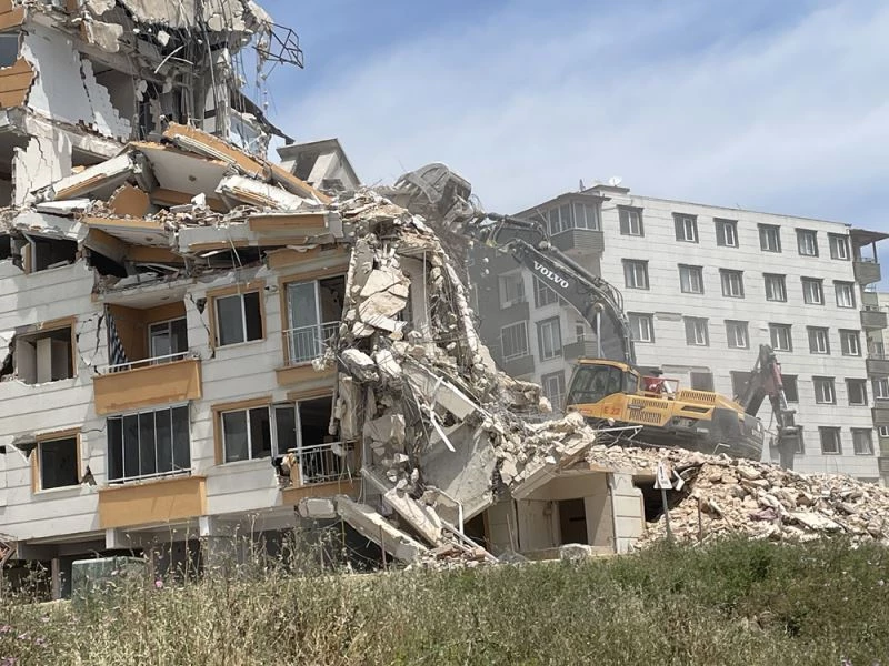 Bu kapsamda, ekipler tarafından alınan güvenlik önlemlerinin ardından iş makineleri yardımıyla ağır hasarlı binaların yıkımı gerçekleştiriliyor.