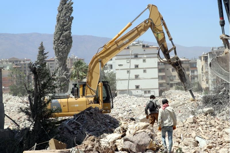 Antakya, Defne, Samandağ, Payas, Altınözü, İskenderun, Kırıkhan ve Reyhanlı ilçelerinde, yıkım kararı verilen ağır hasarlı yapılardaki çalışmalar sürüyor.