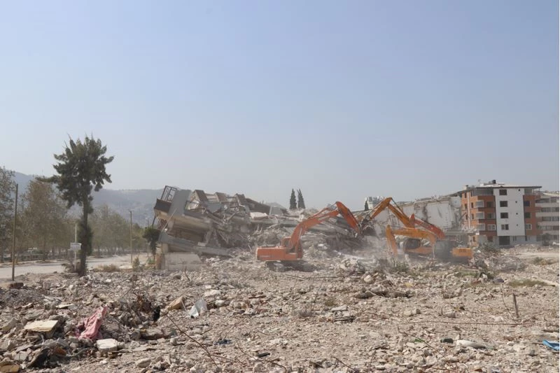 Depremin ardından yıkım kararı verilen merkez Antakya ve Defne ile diğer bazı ilçelerdeki ağır hasarlı yapılarda çalışmalar sürüyor.