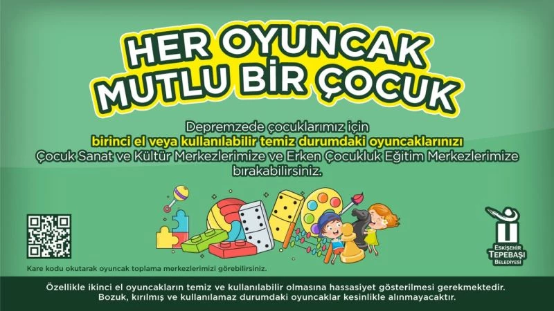 Tepebaşı Belediyesi, Kahramanmaraş merkezli meydana gelen 7.7 ve 7.6 büyüklüğündeki depremlerden etkilenen çocuklar için ‘Her Oyuncak Mutlu Bir Çocuk’ sloganı ile oyuncak kampanyası başlattı.