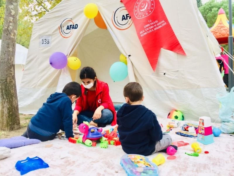 İzmir’de meydana gelen 6.6 büyüklüğündeki depremden en fazla etkilenen çocukları unutmayan devlet onlara psikolog, sosyolog, sosyal çalışmacı, çocuk gelişim uzmanı göndererek oyun oynayıp sarsılan psikolojilerini düzeltmeye çalışıyor.