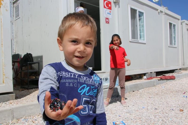 Konteyner kentte arkadaşlarıyla toplandıklarını belirten çocuklardan Caner Yıldız, “Konteyner kentte şeker topluyoruz. Eski bayramları hatırlatmasa da yine de çok güzel geçti” diye konuştu.