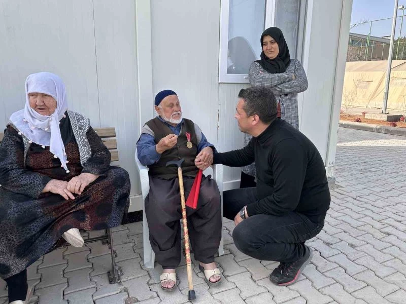 Kayseri Büyükşehir Belediyesi’nin depremin merkez üssü olan Kahramanmaraş’ta depremzedelerin barınma ihtiyaçları için kurduğu konteyner kent içerisinde ikamet eden Kıbrıs Gazisi Hüseyin İkikardeş ile depremzede vatandaşlar Başkan Büyükkılıç’a hem dua hem de teşekkür ettiler.