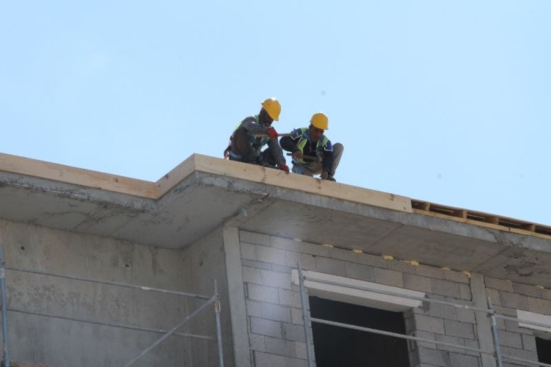 Elazığ’da deprem sonrası yapımına başlanan konutlarda çalışmalar bayramda da devam etti. Korona virüs tedbirleri kapsamında bayram nedeniyle il dışına gitmemeleri istenen işçiler mesai yaptı.