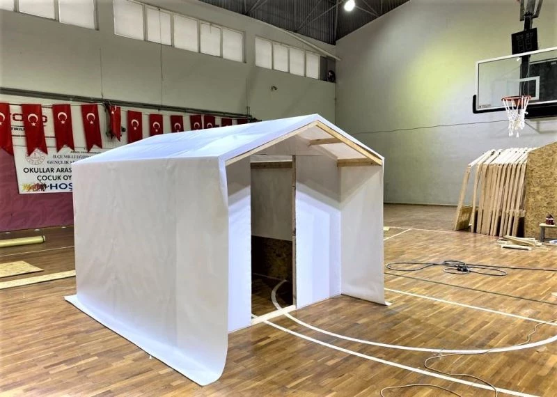 Depremzedeler için el ele verdiler, spor salonunda çadır üretmeye başladılar