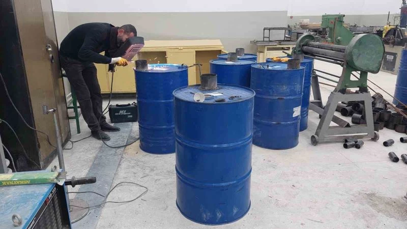 Tekirdağ’da meslek lisesi öğretmenleri ve sanayi esnafı ustaları güçlerini birleştirip, depremzedeler için varilden soba üretiyor.