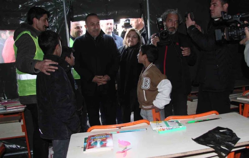 Bakan Çavuşoğlu, alanda kurulan çadırları gezerek çocuklarla da sohbet edip, eğitimleri konusunda bilgi aldı.