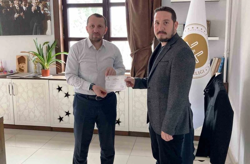 Üçpınar Camii İmam Hatibi Yasin İpek aracılığı ile İlçe Müftülüğüne gönderilen 7 bin TL, ilgili yerlere ulaştırılmak üzere makbuz karşılığı İlçe Müftüsü Hasan Serçe’ye teslim edildi.
