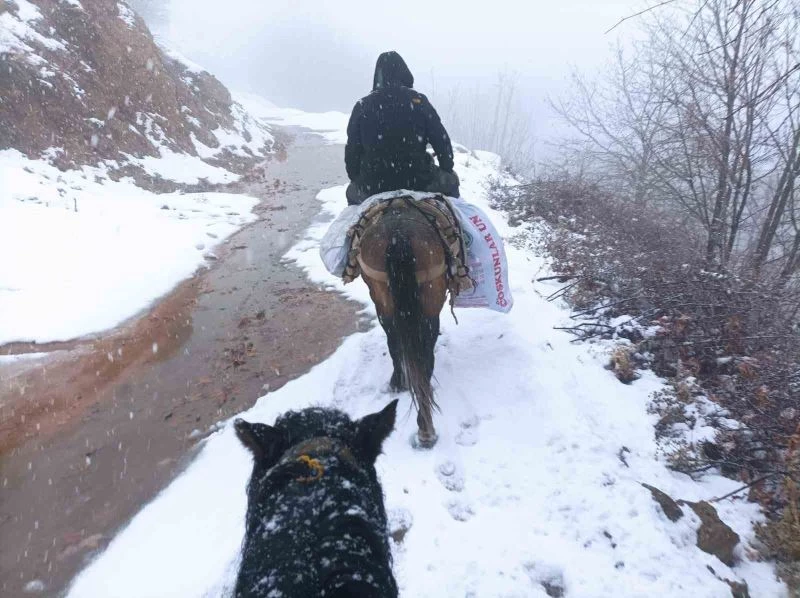 Depremzedelere katır sırtında yardım taşıyorlar