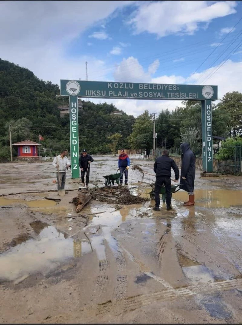 Zonguldak’ın Kozlu ilçesinde dere taşkını sonrası ekipler temizlik çalışması başlattı.