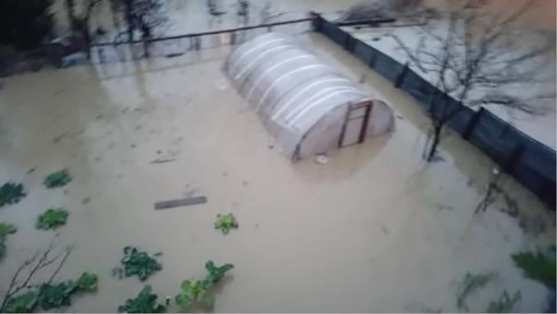 Meteorolojinin uyarılarının ardından Karabük’ün Yenice ilçesinde kar ve sağanak yağmur etkili oldu. Yazıköy köyü İncebacaklar Mahallesinde etkili olan sağanak sonrası su seviyesinin yükseldiği dere taştı. Derenin yanında bulunan bahçe ve içerisindeki sera taşma nedeniyle sular altında kaldı. O anlar bir vatandaş tarafından cep telefonuyla kaydedildi.