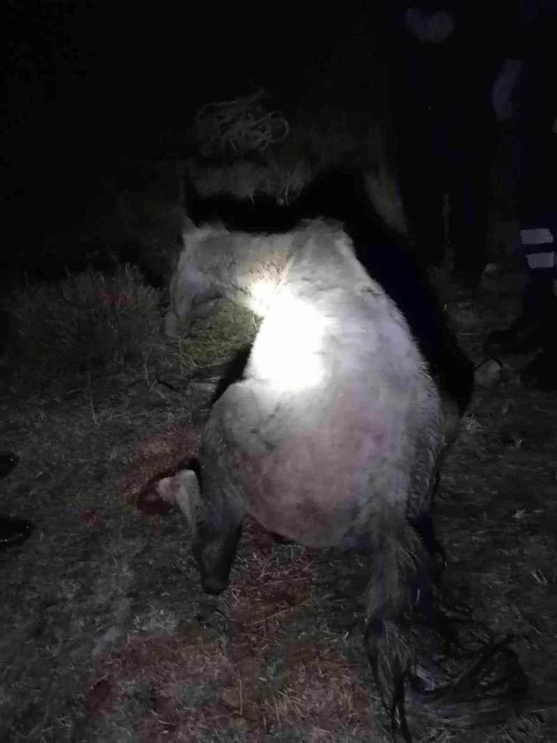 Haber verilmesi üzerine köye giden itfaiye ekibi, bitkin düşen atı mahsur kaldığı yerden kurtararak sahibine teslim etti.