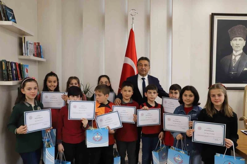 İl Milli Eğitim Müdürü Rahmi Güney, makamında ağırladığı öğrencilerle sohbet ederek “Öncelikle ortaya koyduğunuz eserlerin çok kıymetli olduğunu belirtmek isterim. Proje sürecinde sergilediğiniz sabır ve özveriden dolayı sizleri tebrik ediyorum. Tabi öğrencilerimizin yanında olan ve onları her daim destekleyen okul yöneticilerimize, öğretmenlerimize ve ailelerimize de teşekkür ediyorum.” diyerek öğrencilere ödüllerini takdim etti.
