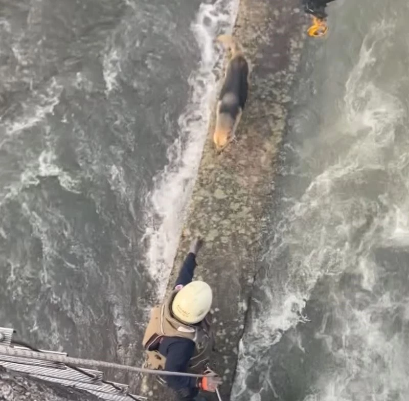 Başiskele ilçesi Doğantepe Mahallesi Kiraz Deresi’nde yoldan geçen vatandaşlar, dereye düşen köpeği fark etti. Yüksek debide akan derede mahsur kalan köpek, suyun içinde bulunan taşın üstüne sığındı. Kendi imkanlarıyla köpeği çıkarmak isteyen vatandaşlar başarılı olamayınca Kocaeli Büyükşehir Belediyesi itfaiye ekiplerine haber verdi. İhbar üzerine olay yerine gelen ekipler, köpeği kurtarmak için çalışma başlattı. Bir itfaiye eri, halat yardımıyla köpeğin bulunduğu alana indi. Kurtarma halatına bağlanan köpek için bölgeye vinç sevk edildi. Metrelerce yükseklikten vinç yardımıyla kurtarılan köpek, dereden çıkarıldı.