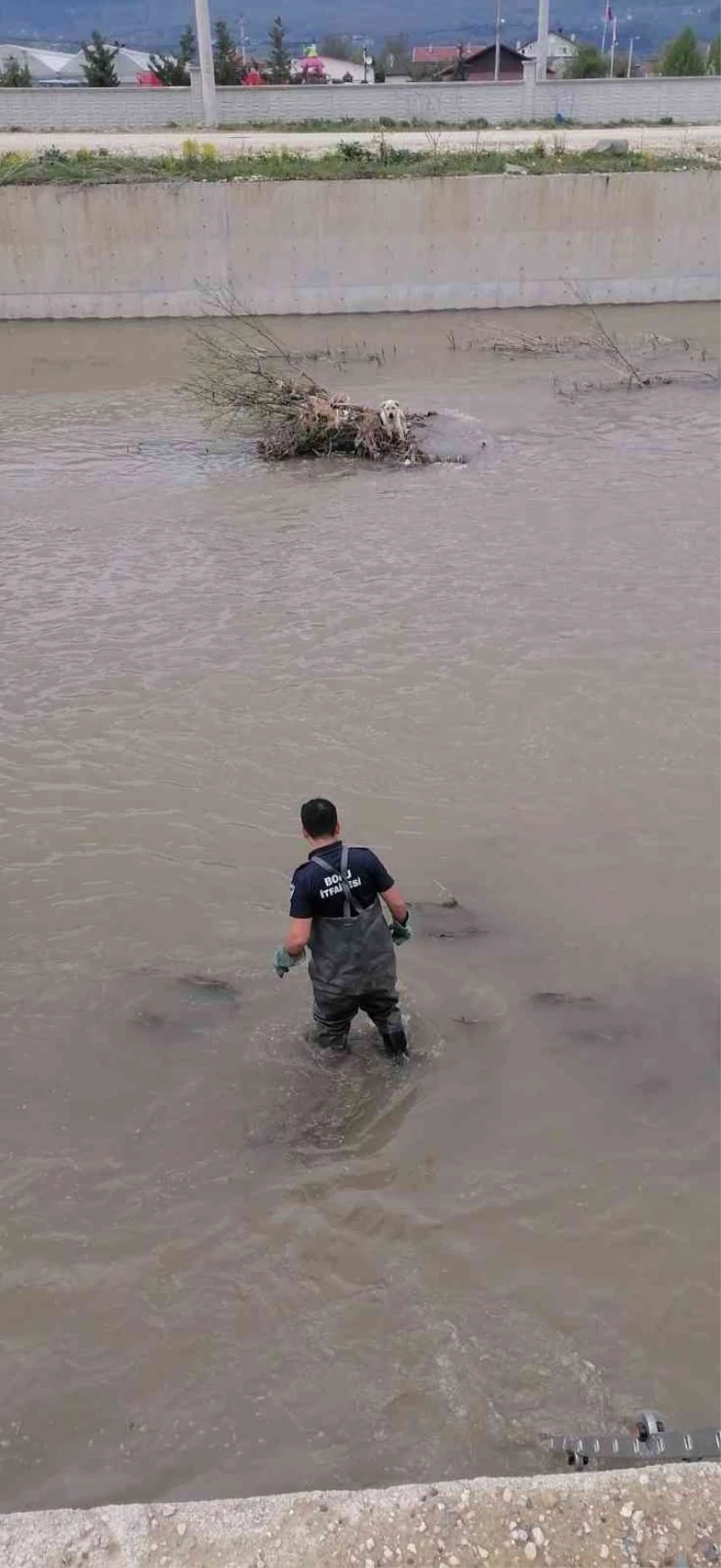 Bolu’da, dere içerisindeki ağaç parçasının üzerinde mahsur kalan köpek itfaiye ekipleri tarafından kurtarıldı.