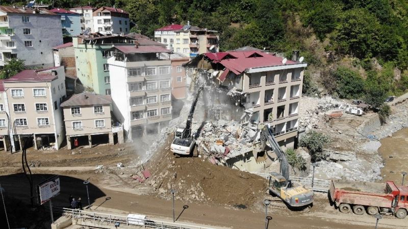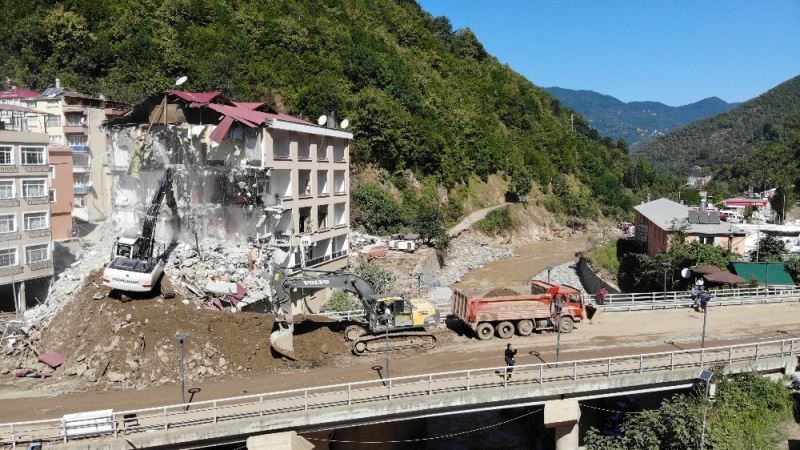 Giresun’un Dereli ilçesinde caddeler 22 Ağustos akşamı yaşanan selin üzerinden geçen 4 günün ardından büyük ölçüde temizlenirken, ilçe merkezinde dere yatağında bulanan yıkımlar da devam ediyor.