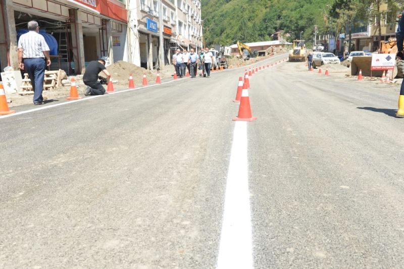 Dereli ilçe merkezinde 2 metre balçıkla kaplı olan ana cadde temizlendi, asfalt serildi