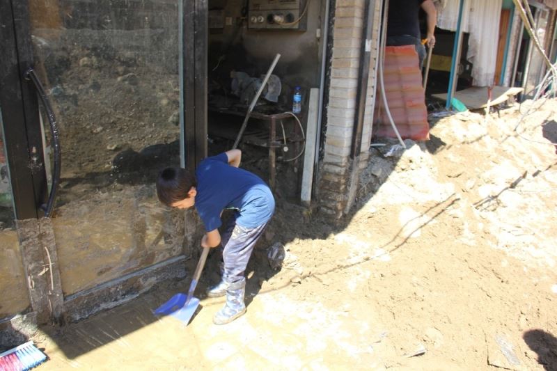 GİRESUN (İHA) – Giresun’da yaşanan selde en büyük hasarı gören Dereli ilçe merkezindeki iki caddede bulunan dükkanların temizlik çalışmaları sürüyor.