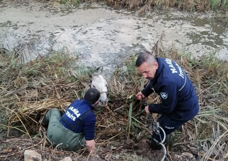 Manisa’nın Yunusemre ilçesinde dereye düşen at, Manisa Büyükşehir Belediyesi İtfaiye Dairesi Başkanlığı ekiplerinin saatler süren çalışması sonucu kurtarıldı. Atın sahibini tespit eden ekipler, kurtarılan atın sahibine teslim edilmesini de sağladı.