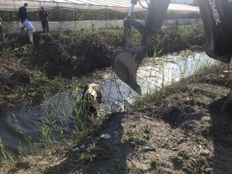 Muğla’nın Dalaman ilçesinde dereye düşen ineği itfaiye ekipleri kurtardı.