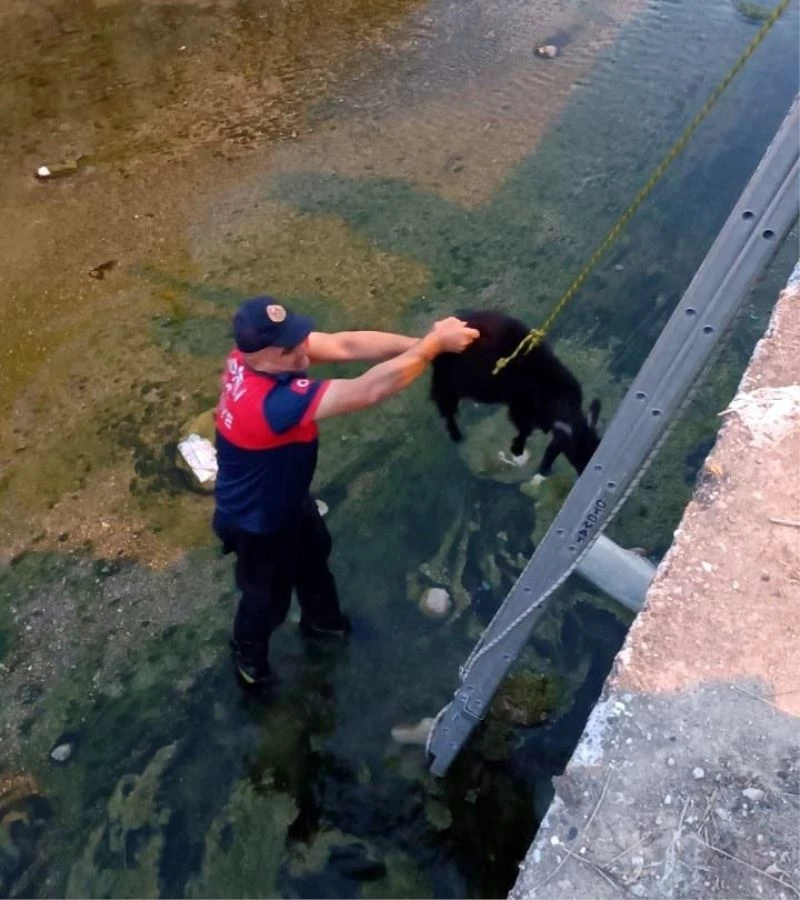 Osmaniye’nin Kadirli ilçesinde dereye düşen keçi itfaiye ekipleri tarafından kurtarıldı.